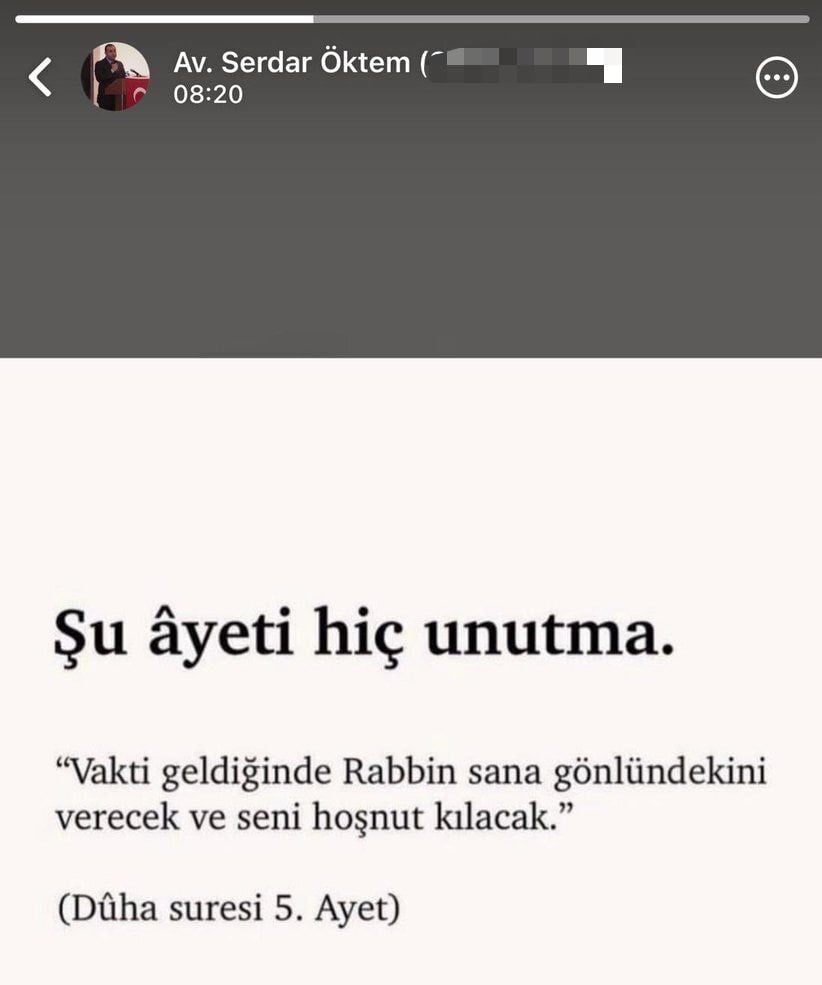 Bu arada Serdar Öktem’in bu sabah saatlerinde mesajlaşma uygulaması WhatsApp’ta yaptığı son paylaşımı da ortaya çıktı.